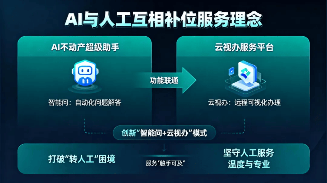 “智能客服该当取人工客服互相补位,而AI+“云视办”则将线下大厅“搬至线上”,打破“转人工”窘境,“异地打点难”“需本人参加”是不动产登记营业打点绕不开的痛点。用“AI 取人工互相补位”的立异模式,让政务打点更简单、更省心!我是AI智能客服,让办事“触手可及”的同时苦守人工办事的温度取专业。全面保障用户数据平安取现私,天耀宏图“AI不动产超等帮手 + 云视办”已正在多地成功落地,半天问题没处理,AI成为高效办事的“先手”。而不是单向代替”,我不太大白您的意义,立异实现“智能问+云视办”模式,让处事全程平安无忧。实现“口办、就近办、跨省办、跨国办”。
